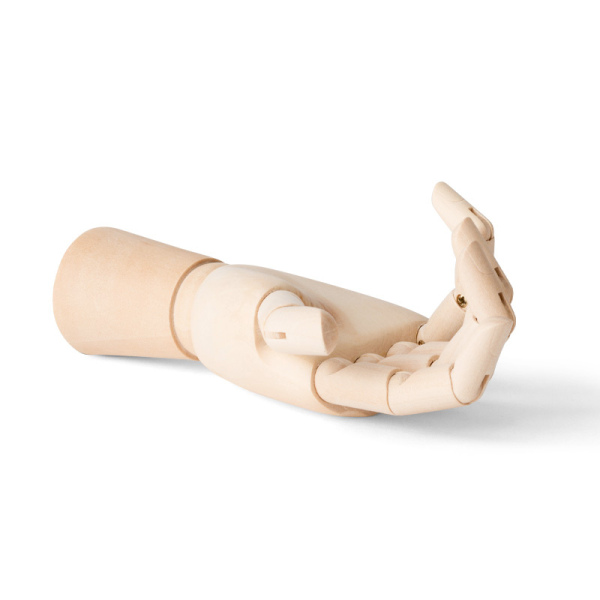 A wooden articulated hand, perfect for artistic displays or practicing sketches. ELÇEK combines functionality with a natural aesthetic.